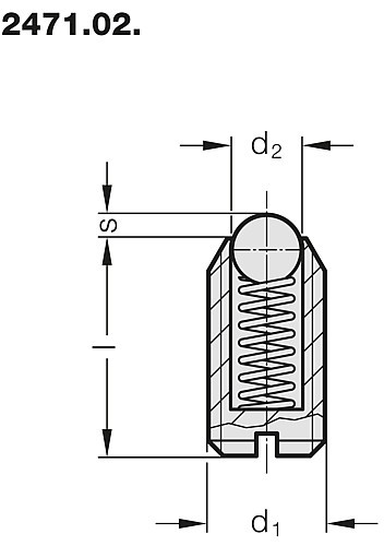 2471.02._32. Druckstück, federnd, mit Kugel, mit Schlitz, verstärkte Federkraft