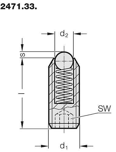 2471.03._33. Druckstück, federnd, mit Kugel, mit Innensechskant, normale Federkraft