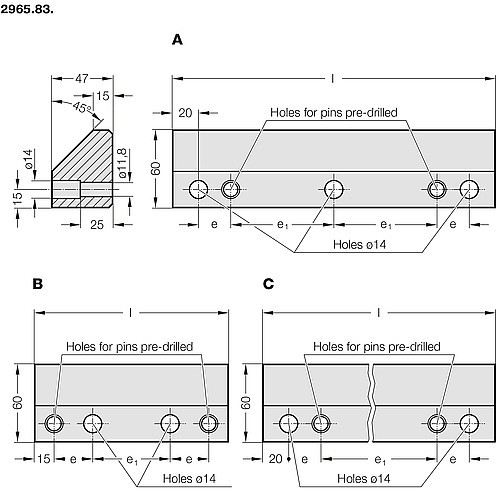 Matching single-sided prismatic guides 2965.81.